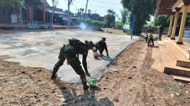 TMMD ke-128: Danramil 12 Bancar Pimpin Kerja Bakti dan Penanaman 60 Pohon Cemara Laut di Pantai Bulumeduro