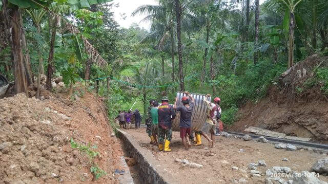 Wujud Sinergi Satgas TMMD dan Warga, Distribusi Material Dilaksanakan Estafet