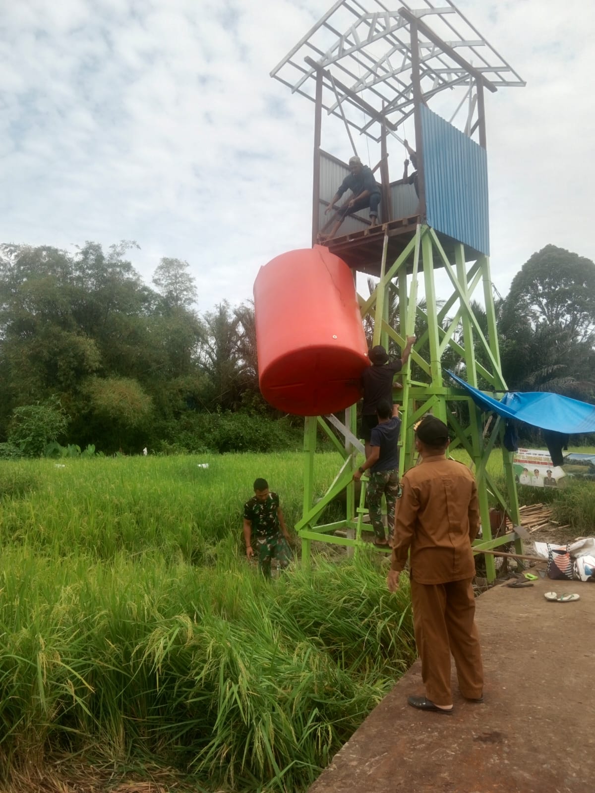 Pemasangan tandon di atas tower ini menandai kesiapan infrastruktur utama TMAB sebelum masuk ke tahap pengujian dan pemanfaatan. Keberadaan tandon diharapkan mampu menampung dan menyalurkan air secara lebih optimal, sehingga kebutuhan air bersih warga dapat terpenuhi secara berkelanjutan.