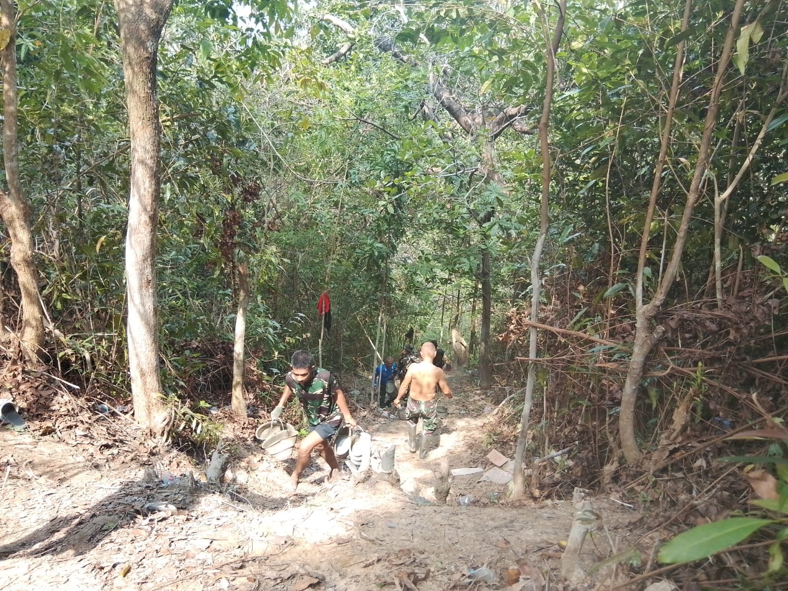 Para personel TNI bersama warga setempat tampak bahu-membahu mengolah material dan melakukan pengecoran dengan penuh semangat meski di bawah cuaca yang menantang, demi mewujudkan akses air bersih yang telah lama dinantikan.