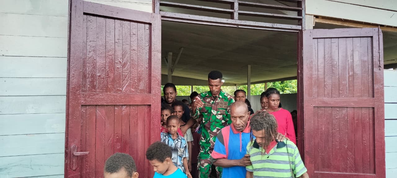 Boven Digoel – Ditengah-tengah kesibukan melaksanakan tugas dan tanggung jawab serta sebagai insan yang beriman dan bertaqwa kepada Tuhan Yang Maha Esa, Personel Satgas TNI Manunggal Membanggun Desa (TMMD) ke-126 Kodim 1711/BVD tetap melaksanakan ibadah bersama warga setempat di Gereja Katolik Sakramen Maha Kudus Waropko Kampung Waropko Distrik Waropko Kab. Boven Digoel, Minggu (12/10/2025).