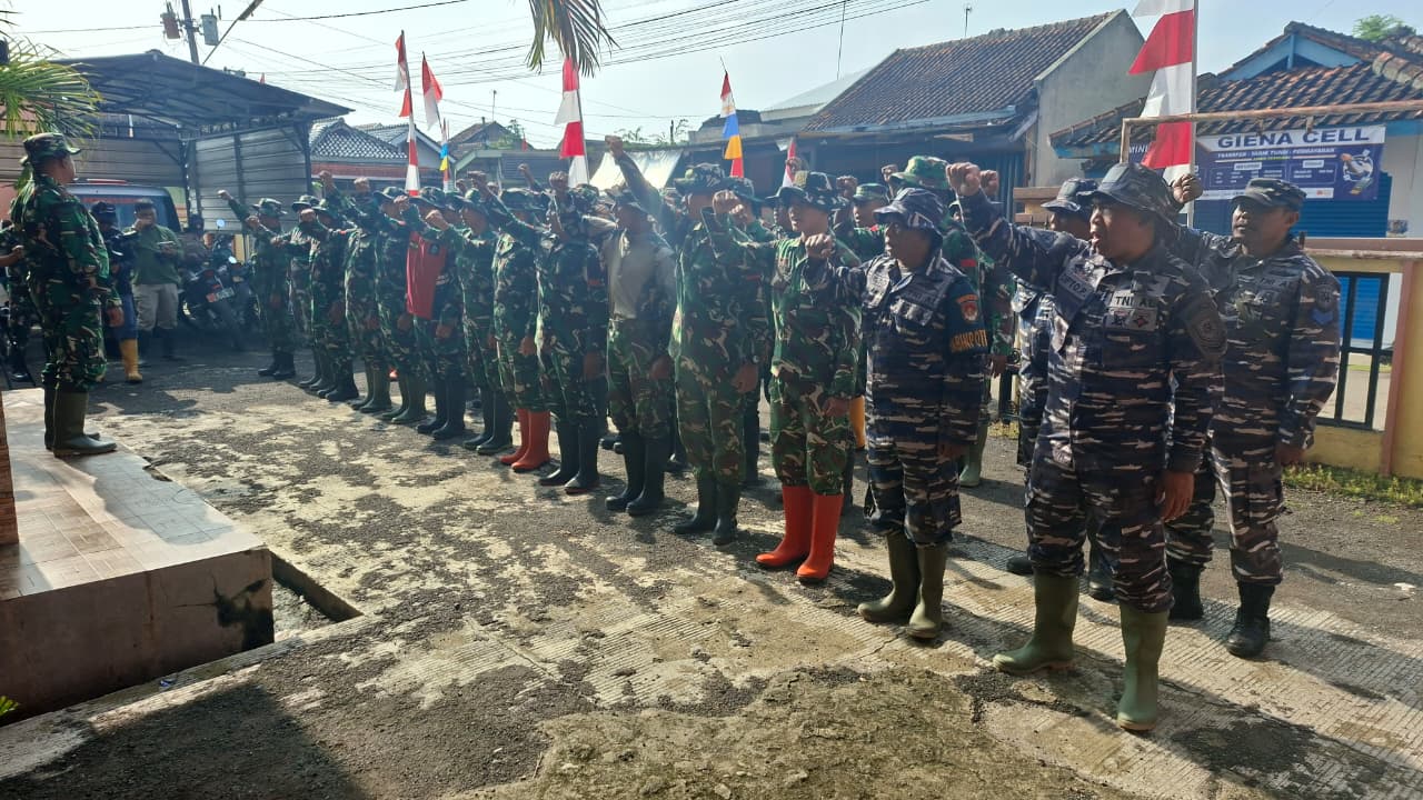 BREBES – Satgas TNI Manunggal Membangun Desa (TMMD) ke-127 melaksanakan apel pagi sebelum memulai kegiatan di Desa Cikuya, Kecamatan Banjarharjo Kabupaten Brebes. Rabu(11/2/2026).