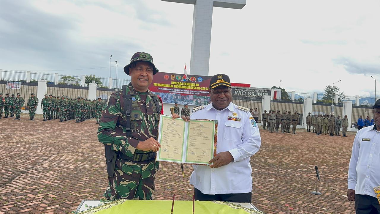 Wamena – Kodim 1702/Jayawijaya menggelar Upacara Pembukaan TNI Manunggal Membangun Desa (TMMD) ke-126 Tahun Anggaran 2025, yang berlangsung di Halaman Kantor Bupati Jayawijaya, Rabu (08/10/2025).