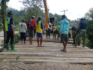Satgas TMMD 125 Kodim 1417/Kendari dan POLRI Bergotong Royong Bangun Jembatan