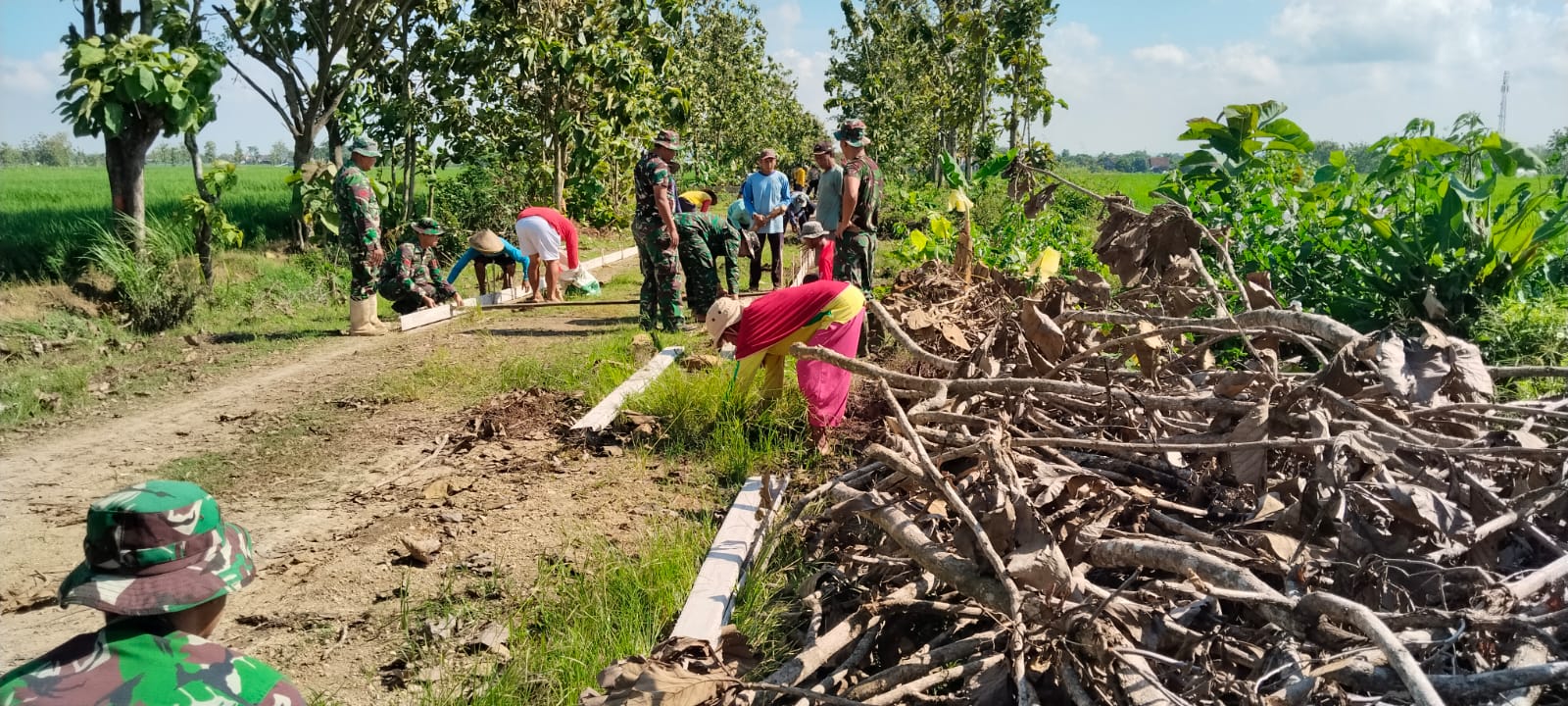 “Saya merasa senang kepada TNI yang selalu semangat dan kompak saat bekerja, bahkan sesekali mengajak bergurau warga yang ada di lokasi TMMD ini,” ungkap Bu Suliyem. “Jadi saya ikut kerja membangun jalan,” tambahnya.