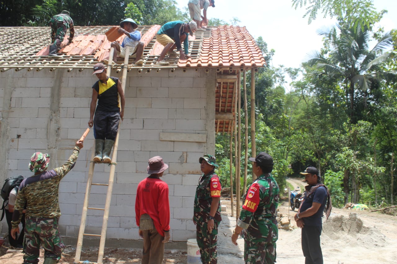 Dandim berdiri, lalu menatap bangunan yang sedang tumbuh itu—dinding yang mulai tegak, rangka atap yang siap menantang langit. Ia kemudian melangkah menyusuri lokasi, mengecek progres pekerjaan, berdialog singkat dengan anggota di lapangan, memastikan waktu pembangunan tetap berada di jalurnya.