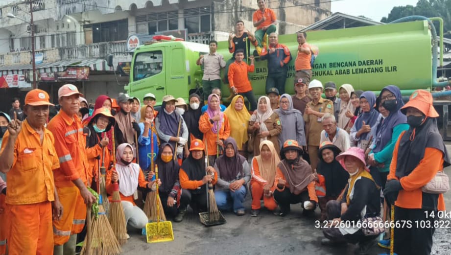 PALI – Guna menjaga kebersihan dan kelestarian lingkungan, Dinas Lingkungan Hidup (DLH) bersama Disperindag dan BPBD PALI, serta para staf dan pedagang di lingkungan kelurahan Talang Ubi Timur, melaksanakan kerja bakti pembersihan di lingkungan Pasar Inpres Talang Ubi, Selasa, 14 Oktober 2025.