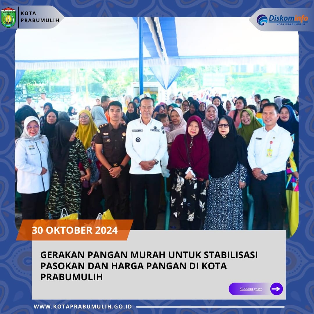 PRABUMULIH, – Pemerintah Kota Prabumulih melalui Dinas Ketahanan Pangan kembali menggelar kegiatan Pasar Murah dan Pangan Murah dalam rangka pengendalian inflasi serta stabilisasi pasokan dan harga pangan di Kota Prabumulih Tahun 2024 di Halaman Taman Wonosari Kecamatan Prabumulih Utara, (30/10/2024).