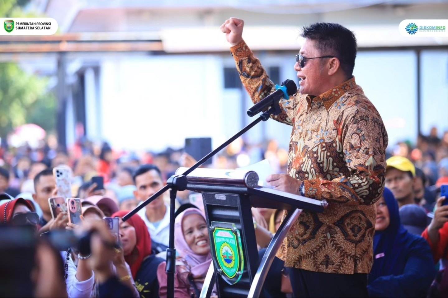 Gubernur Sumsel H. Herman Deru yang hadir langsung membuka acara tampak larut dalam keceriaan masyarakat. Dengan senyum hangat, ia menyapa para peserta dan penonton.