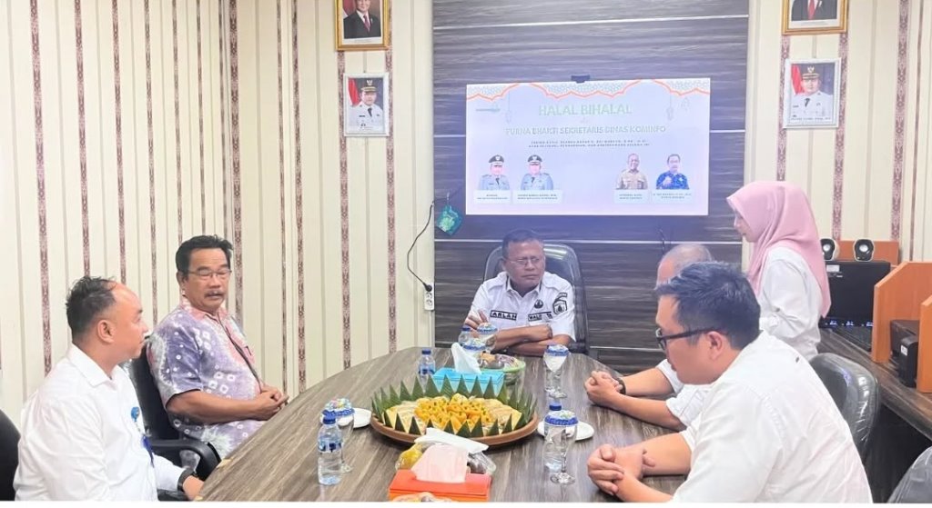 PRABUMULIH, — Suasana hangat dan penuh kekeluargaan mewarnai kegiatan Halal Bihalal yang digelar Dinas Komunikasi dan Informatika (Diskominfo) Kota Prabumulih, yang dirangkaikan dengan acara purnabakti Sekretaris Dinas Kominfo, di Ruang Rapat Dinas Kominfo, Rabu (8/4/2026).