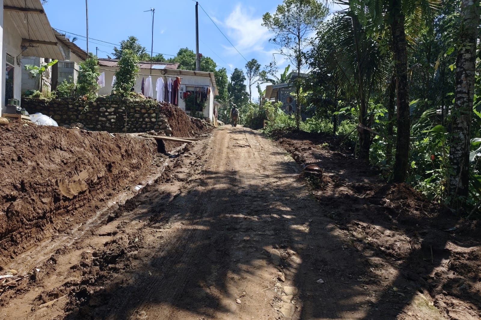 Ditengah suasana pagi yang sejuk, Kurni warga setempat, tampak berbincang santai bersama para tetangganya di pinggir jalan yang sedang dibangun. Obrolan sederhana itu sarat makna tentang harapan, kemudahan akses, hingga impian akan kehidupan yang lebih baik.