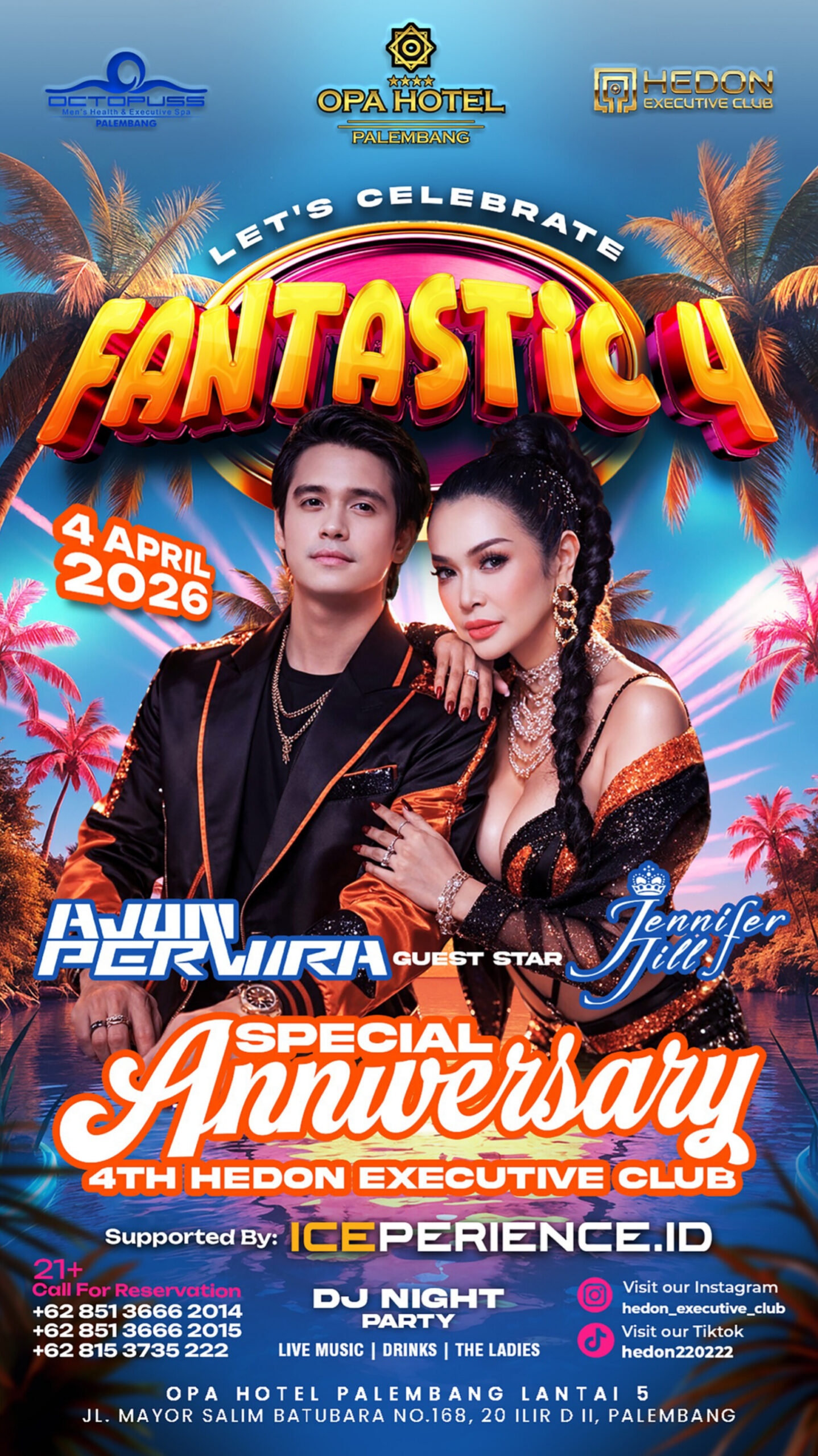 Perayaan Fantastic 4 ini diprediksi akan menjadi salah satu agenda hiburan terbesar di Kota Palembang, sekaligus menjadi bukti eksistensi Hedon Executive Club dalam industri hiburan malam yang semakin kompetitif.