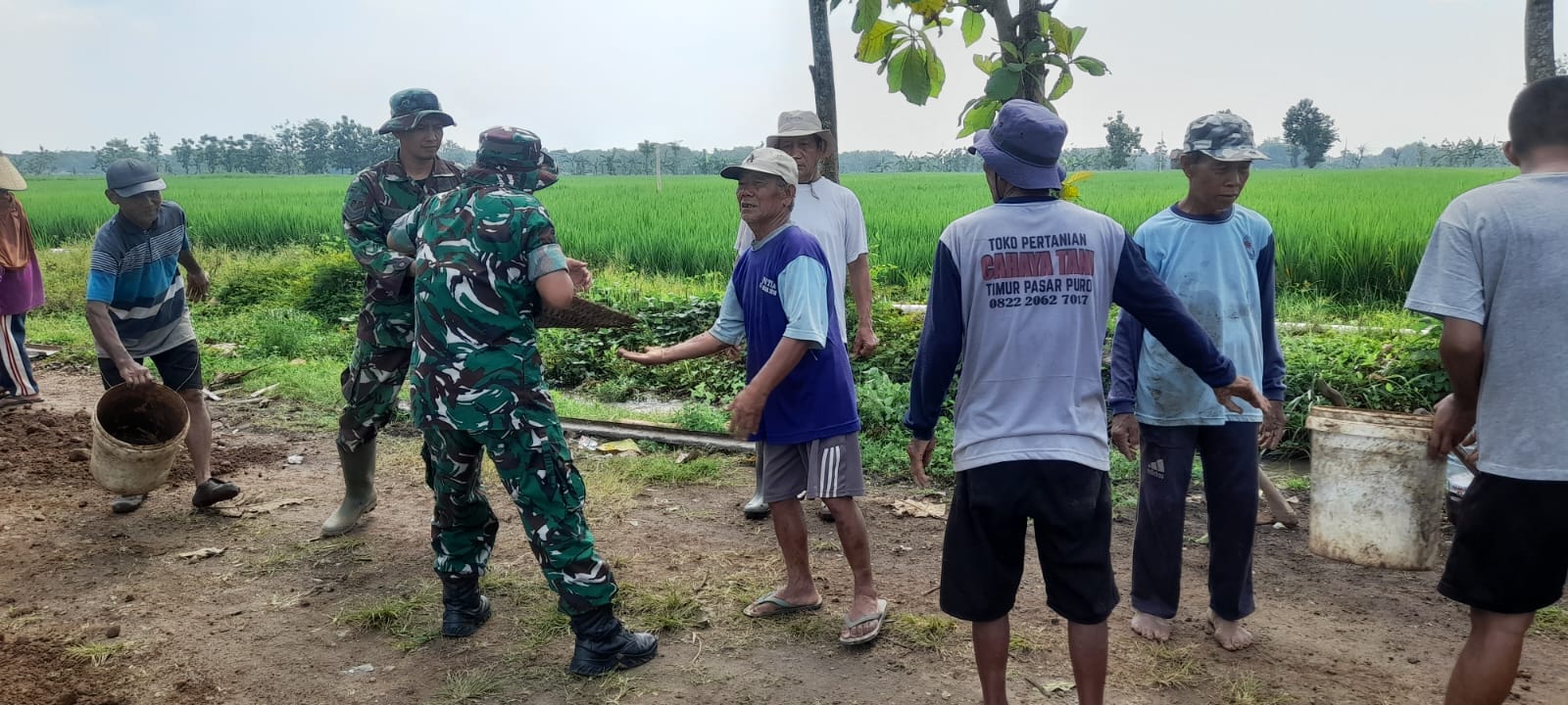 SRAGEN- Semangat kebersamaan dalam kegiatan TMMD di Desa Puro sungguh luar biasa. Tak hanya pemuda, perempuan, dan warga yang sudah sepuh pun tak mau ketinggalan membantu prajurit TNI. Itulah yang dilakukan Sutarno, seorang kakek berusia 72 tahun, warga Desa Puro RT 4 ini.