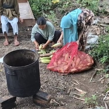 Ibu Weni (45), salah seorang tetangga penerima bantuan RTLH, tampak antusias turun tangan membantu. Bukan dengan cangkul atau semen, melainkan melalui dukungan logistik sederhana yang penuh makna. Bersama ibu-ibu lainnya, ia sibuk menyiapkan hasil kebun sendiri berupa jagung manis untuk diolah bagi para personel Satgas TMMD.