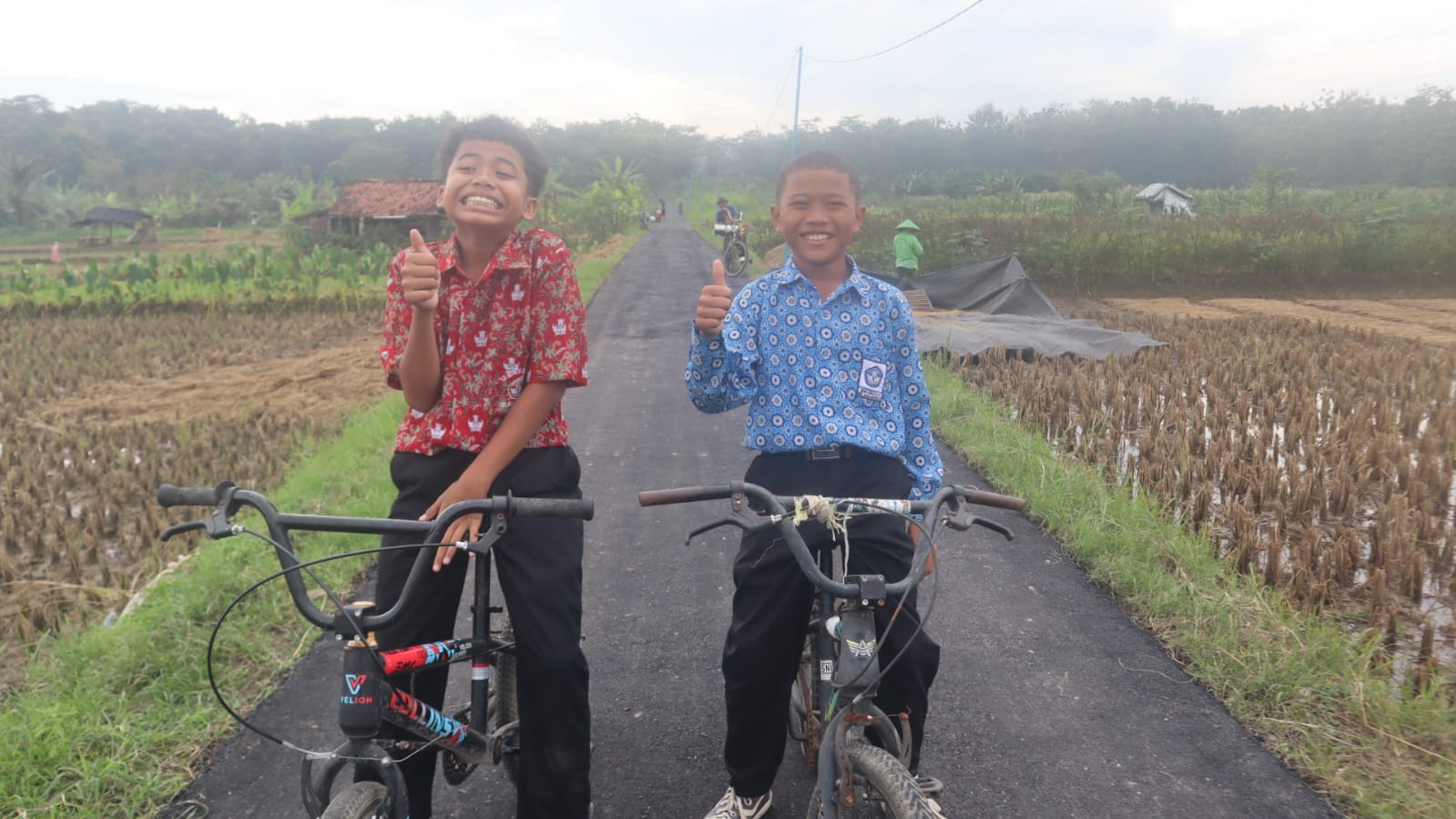 “Dulu jalannya rusak dan banyak batu, kalau naik sepeda harus pelan-pelan supaya tidak jatuh. Sekarang jalannya sudah halus sekali, main sepeda jadi lebih seru dan cepat sampai sekolah,” ungkap Dimas sambil menyeka keringat dengan penuh kegembiraan.