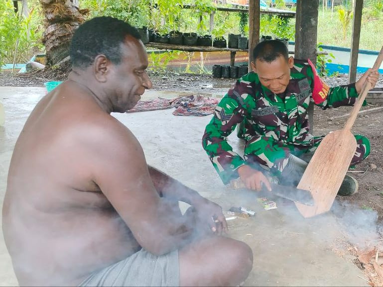 Timika – Dalam rangka menjalin kedekatan dan mempererat hubungan dengan masyarakat, personel Satuan Tugas TNI Manunggal Membangun Desa (Satgas TMMD) ke-124 Kodim 1710/Mimika melaksanakan kegiatan komunikasi sosial (komsos) dengan warga di lokasi pelaksanaan TMMD.