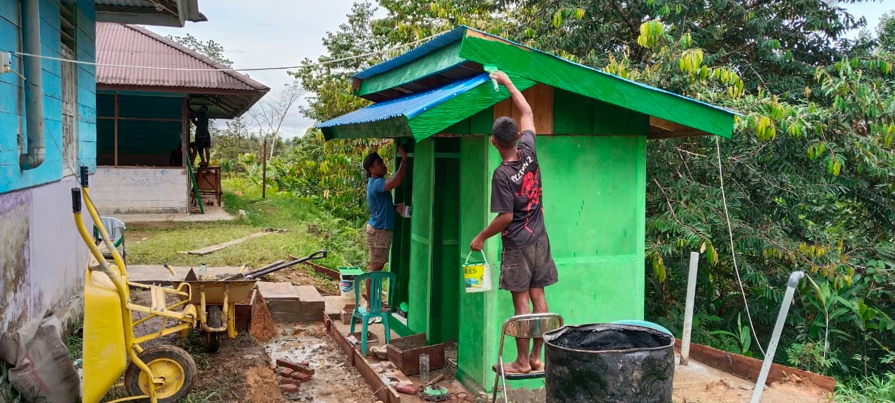 Tahap pengecatan ini menjadi penanda bahwa pekerjaan fisik MCK hampir sepenuhnya rampung dan fasilitas tersebut akan segera dapat dimanfaatkan oleh masyarakat setempat. Personel Satgas terlihat bekerja keras dan penuh semangat di bawah terik matahari, memastikan proses pengecatan menghasilkan tampilan yang rapi, bersih, dan nyaman digunakan.