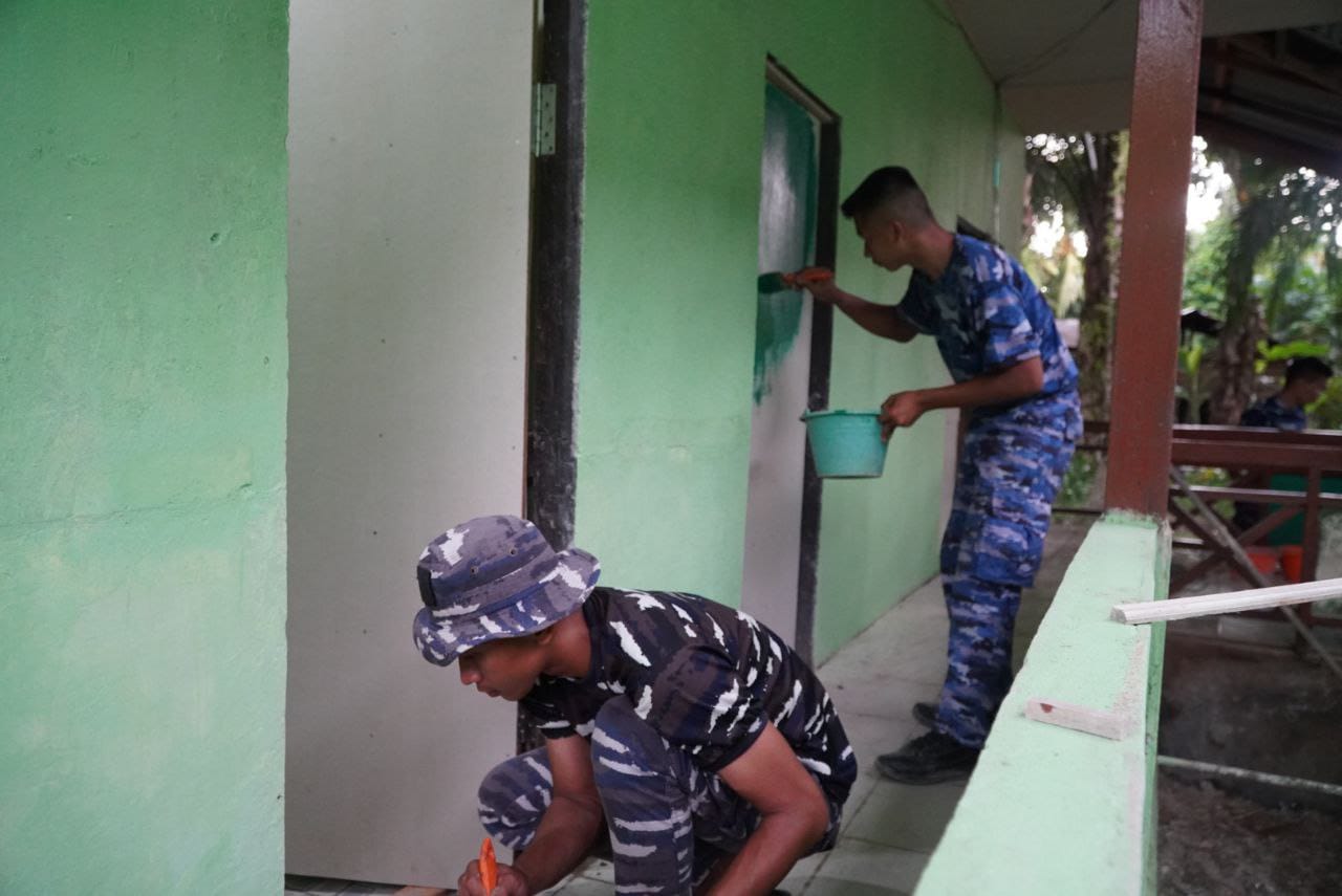 Sambas – Pengerjaan rehabilitasi MCK (Mandi, Cuci, Kakus) di salah satu sekolah dasar yang menjadi sasaran fisik program TNI Manunggal Membangun Desa (TMMD) ke-126 Kodim 1208/Sambas kini telah hampir selesai dikerjakan oleh Satgas TMMD sekarang Satgas melakukan tahap akhir Pengecetan bangunan, Minggu (2/11/2025).