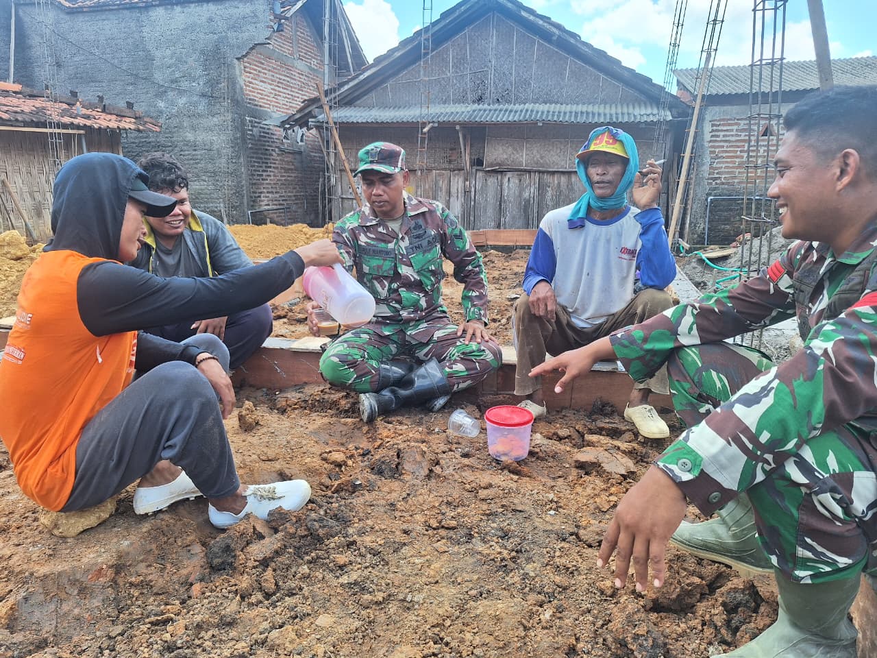 Suasana kebersamaan tersebut mencerminkan eratnya hubungan antara TNI dan masyarakat dalam pelaksanaan kegiatan TMMD. Meski bekerja dengan penuh semangat, kebersamaan sederhana seperti ngopi bersama menjadi momen yang mampu mempererat keakraban.