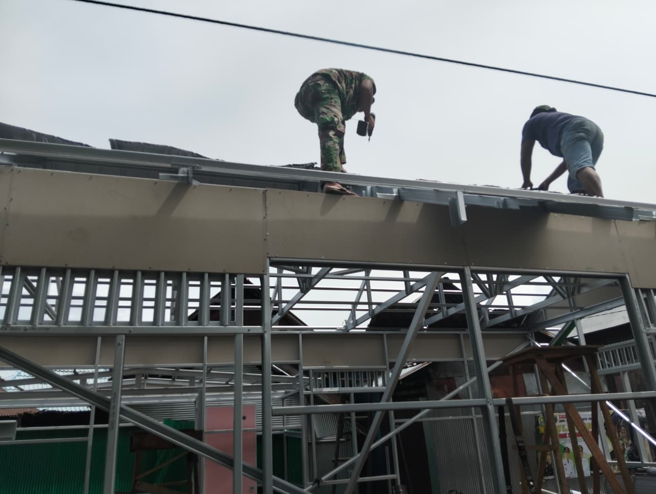 Hingga Jumat pagi (20/02/2026), progres rehabilitasi rumah Nenek Jumiati telah memasuki tahap pemasangan rangka atap rumah. Sebelumnya, Satgas TMMD bersama warga telah menyelesaikan pembongkaran bagian rumah yang rusak, pemasangan rangka dan dinding, serta perapian struktur bangunan. Pemasangan rangka atap dilakukan dengan teliti agar konstruksi kokoh dan mampu melindungi rumah dari panas dan hujan, sehingga nantinya benar-benar aman dan nyaman ditempati.