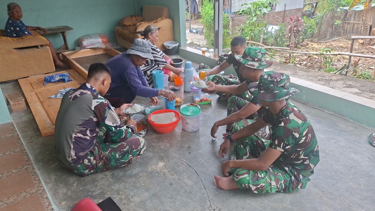 ”Rasanya seperti makan dengan keluarga sendiri. Bapak-bapak TNI ini ramah-ramah, tidak sungkan makan apa adanya bareng kami di bawah pohon atau di teras rumah,” ungkapnya.