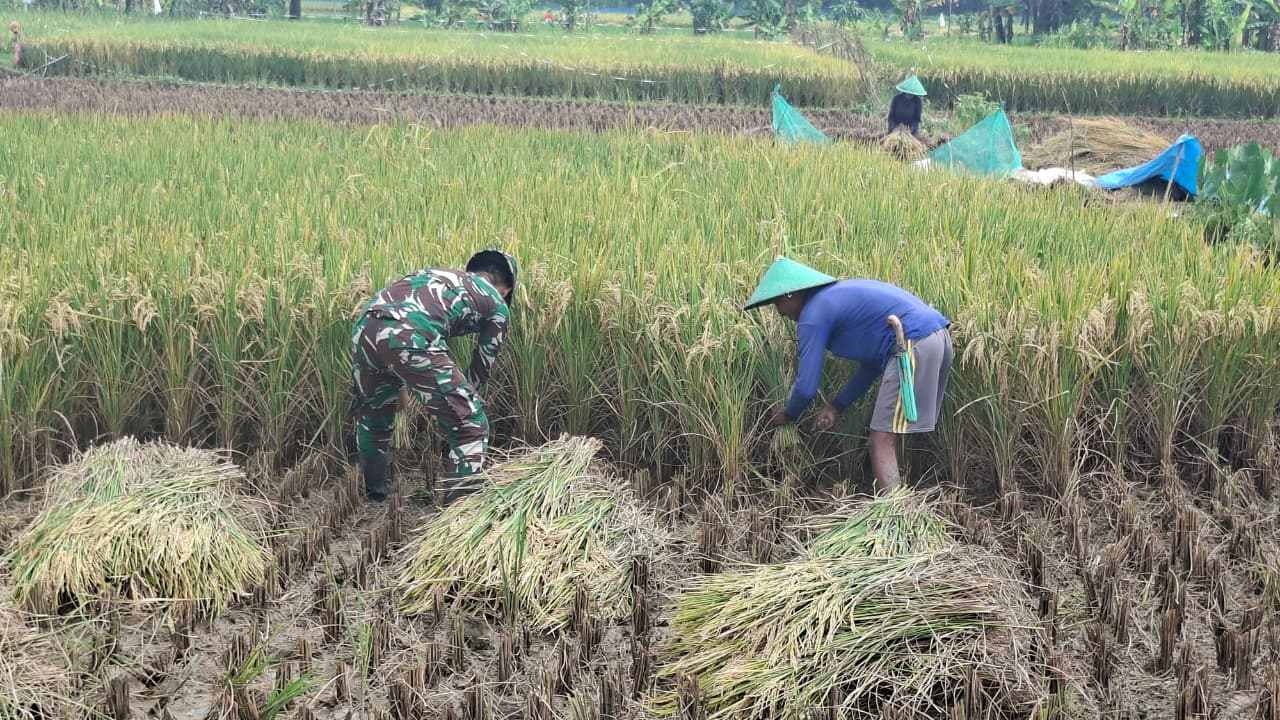 Mendengar panggilan tersebut, Serda Djoko segera menghampiri dan tanpa ragu turun ke sawah untuk membantu proses panen. Sambil menyeka keringat, ia bertanya tentang kegembiraan yang dirasakan sang petani tua itu.