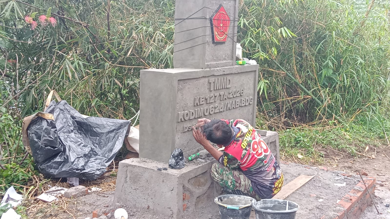 Kegiatan pembuatan tugu ini menegaskan bahwa pembangunan fisik harus didukung oleh semangat nasionalisme dan kebersamaan masyarakat desa. Dokumentasi kegiatan ini menunjukkan bahwa seluruh proses berjalan lancar dan sesuai rencana, mendukung keberhasilan pelaksanaan TMMD ke-127 Tahun 2026 di wilayah Kabupaten Bandung.(*)