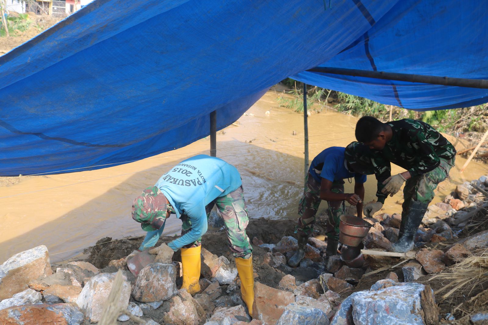 Dan SSK Kapten Inf Taslim mengatakan, pemasangan pipa ini merupakan bagian krusial dari konstruksi dinding penahan tanah guna memastikan sirkulasi air berjalan lancar dan mencegah terjadinya tekanan hidrostatis yang dapat memicu kerusakan struktur bangunan.