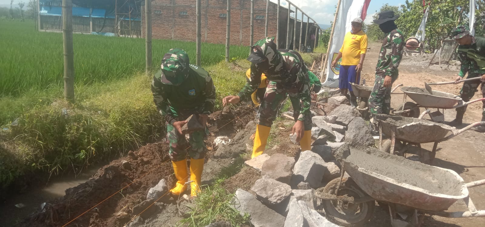 ”Sebagai TNI soal ilmu perang, bela diri tentu sudah saya kuasai, kini bertambah lagi ilmu yang harus saya pelajari saat bertugas di TMMD, yakni memasang batu pondasi untuk talud”, ungkap Sertu Nurdin.