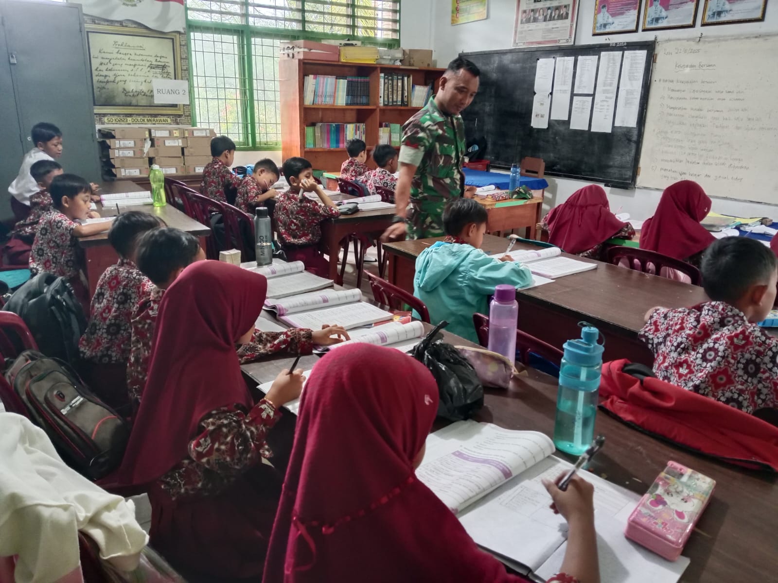 Dalam suasana yang ceria dan interaktif, Pratu Hari Hartato memberikan materi pelajaran dengan pendekatan yang berbeda, menciptakan suasana belajar yang menyenangkan sekaligus inspiratif. Kegiatan mengajar ini merupakan bagian dari upaya Komunikasi Sosial (Komsos) TMMD untuk mempererat tali silaturahmi dan membangun kedekatan antara TNI dan masyarakat, khususnya di lingkungan sekolah.