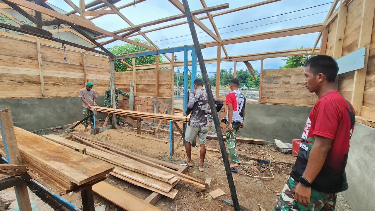 Tahapan krusial berupa pemasangan dinding kayu kini hampir rampung sepenuhnya, mengubah struktur bangunan yang sebelumnya memprihatinkan menjadi hunian kokoh yang siap melindungi penghuninya dari terik dan hujan.