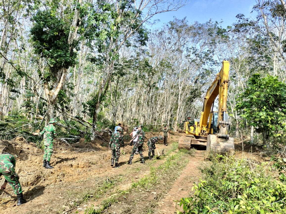 Dengan semangat gotong royong, personel Satgas TMMD bersama warga setempat bahu-membahu mempercepat proses pembukaan jalan. Berbagai peralatan, baik manual maupun alat berat, dikerahkan guna menunjang kelancaran pekerjaan di lapangan.