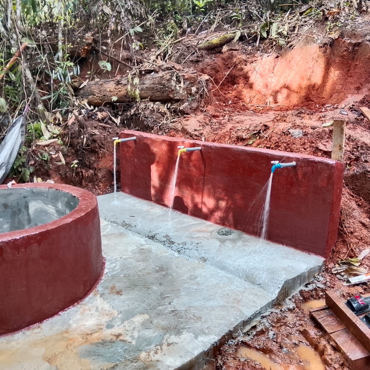 Material untuk pengecoran sudah lengkap dan proses dilakukan secara teliti agar hasilnya kokoh dan tahan lama. Setelah pengecoran selesai, pemasangan kran air dilakukan untuk memastikan warga dapat dengan mudah mendapatkan air bersih setiap hari.