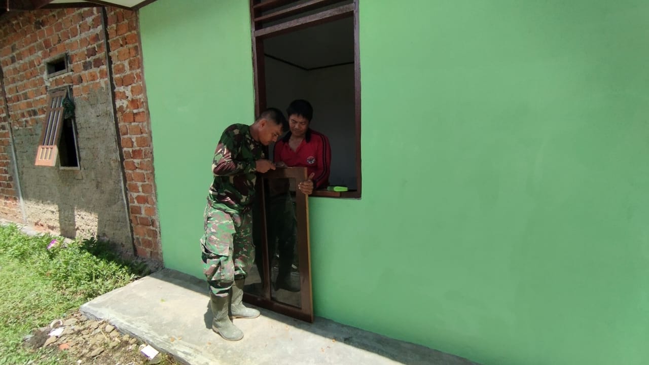 Semangat Anggota TNI yang tergabung dalam satgas TMMD ke-124 Kodim 1802/Sorong terlihat aktif mengerjakan pemasangan pintu dan jendela, yang merupakan bagian penting dari proses pembangunan rumah. Pemasangan ini bertujuan untuk meningkatkan keamanan dan kenyamanan rumah tersebut, serta memberikan tampilan yang lebih layak dan estetik. Ungkap Kapten Inf Semba.