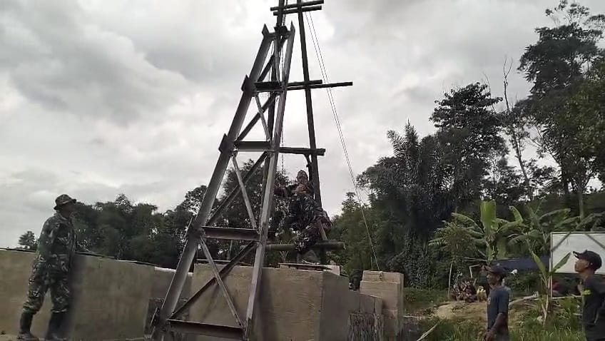 Pacet, Kab. Bandung – Mimpi masyarakat Kampung Rumbia dan Kampung Cibutak di Kecamatan Pacet, Kabupaten Bandung, untuk memiliki akses penghubung yang lebih baik semakin mendekati kenyataan. Pembangunan Jembatan Gantung Perintis Garuda Tahap II, yang melintasi derasnya aliran sungai Citarum, terus dikebut dan menunjukkan progres yang menggembirakan. Pada hari Selasa, 03 Maret 2026, anggota Koramil 2416/Pacet Kodim 0624/Kab. Bandung, bahu membahu bersama Tim Asnik Puziad, para tukang ahli, dan warga setempat, kembali melanjutkan pengerjaan jembatan yang sangat dinantikan ini.