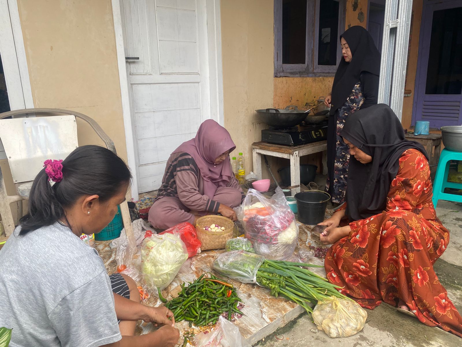 Sejak pagi hari, para ibu-ibu dan warga bergotong royong di dapur, menyiapkan aneka hidangan sederhana namun penuh makna. Dengan penuh semangat, mereka memasak nasi, sayur, hingga lauk-pauk sebagai bentuk dukungan dan rasa terima kasih kepada prajurit TNI yang telah bekerja tanpa lelah membangun desa mereka.