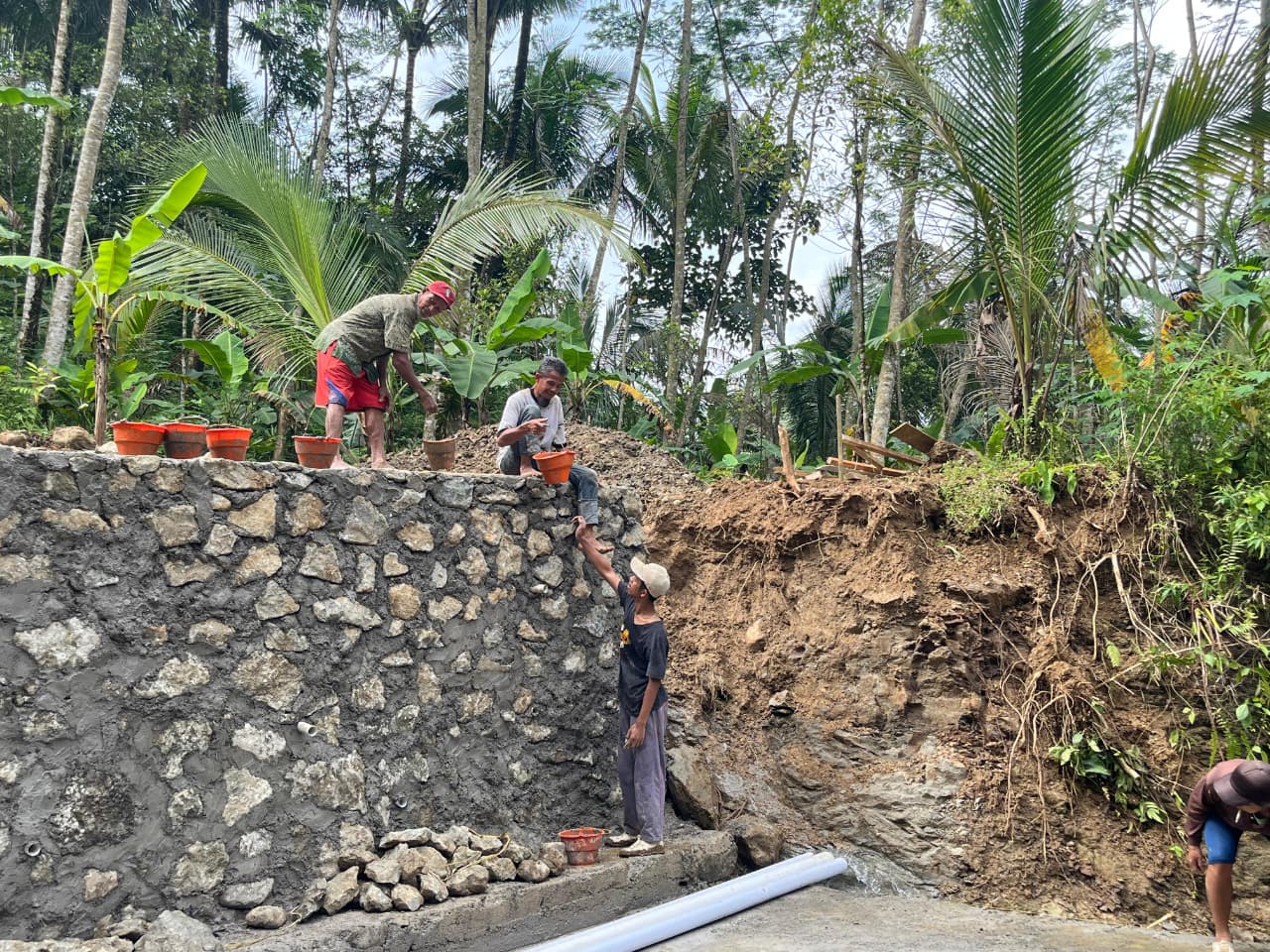 “Kami saling bantu. Kalau ada yang mengaduk, saya siap di bawah untuk menerima semen, begitu juga sebaliknya. Intinya saling inisiatif dan kompak supaya pembangunan cepat selesai,” tuturnya.