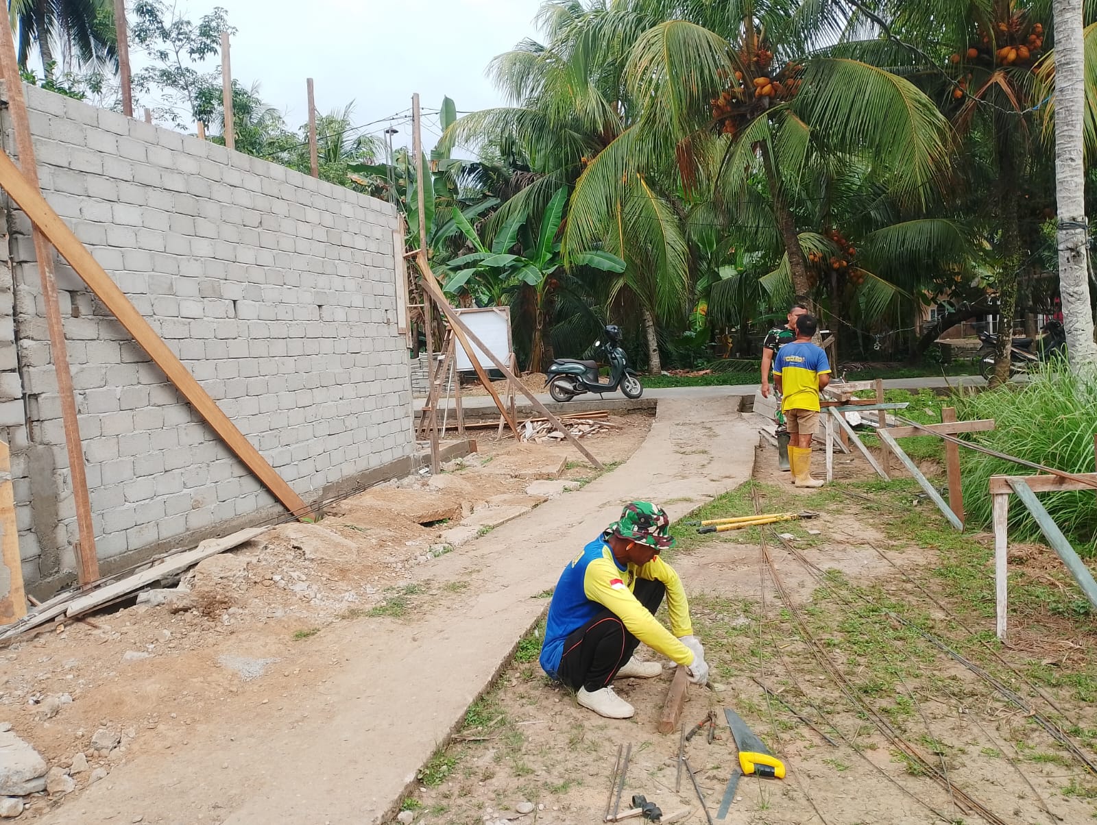 Tanjung, Kuansing – Satgas TMMD (TNI Manunggal Membangun Desa) ke-127 Kodim 0302/INHU terus memacu pembangunan rumah layak huni (Rutilahu) milik Ibu Baida di RT.006 RW.003 Desa Tanjung, Kecamatan Kuantan Hilir Seberang, Kabupaten Kuantan Singingi. Pada hari Selasa, 17 Februari 2026, pukul 08.30 WIB, kegiatan difokuskan pada melanjutkan pemasangan batu batako dan perakitan besi untuk persiapan pengecoran balok atas.
