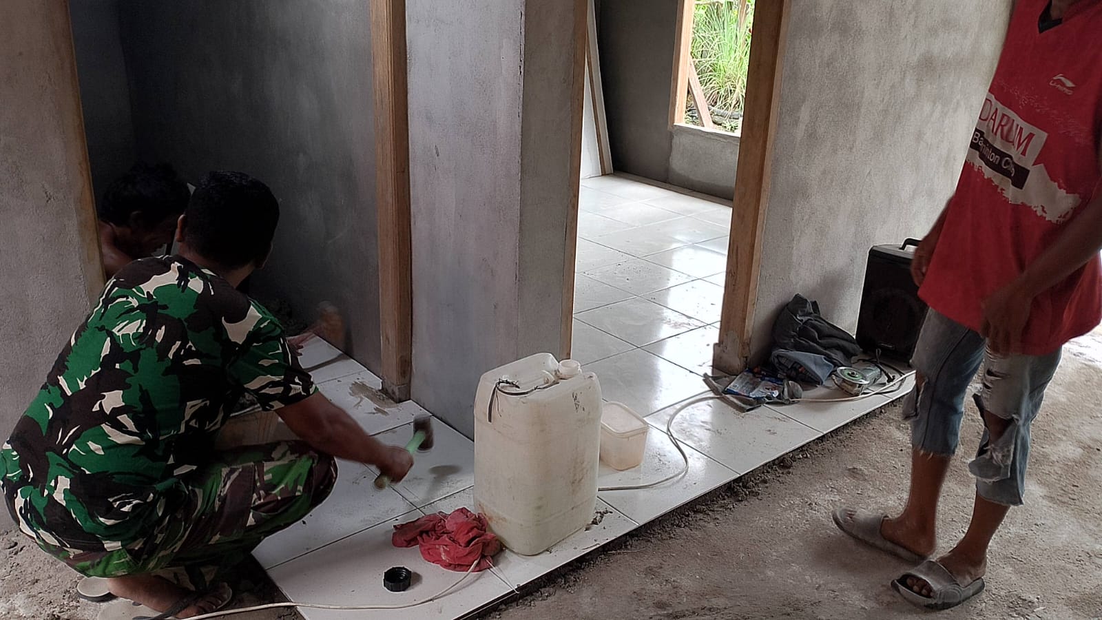 Satgas TMMD 127 Kodim 0302/Inhu Laksanakan Pemasangan Keramik Rumah Layak Huni Milik Bapak Masrizal