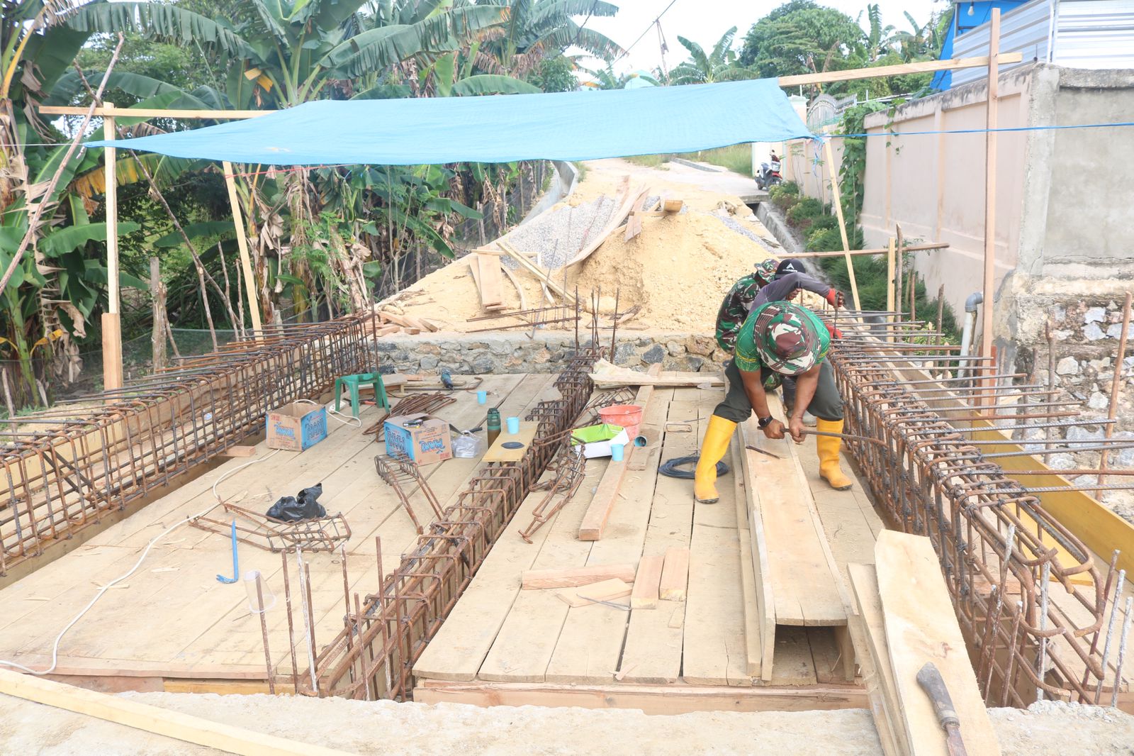 Para prajurit bersama warga setempat terpantau mulai memasuki tahap krusial, yakni perakitan dan pemasangan besi tulangan. Tahap ini merupakan fondasi utama sebelum dilakukannya proses pengecoran badan jembatan guna memastikan struktur bangunan memiliki daya tahan yang kuat dan kokoh untuk digunakan masyarakat dalam jangka panjang.