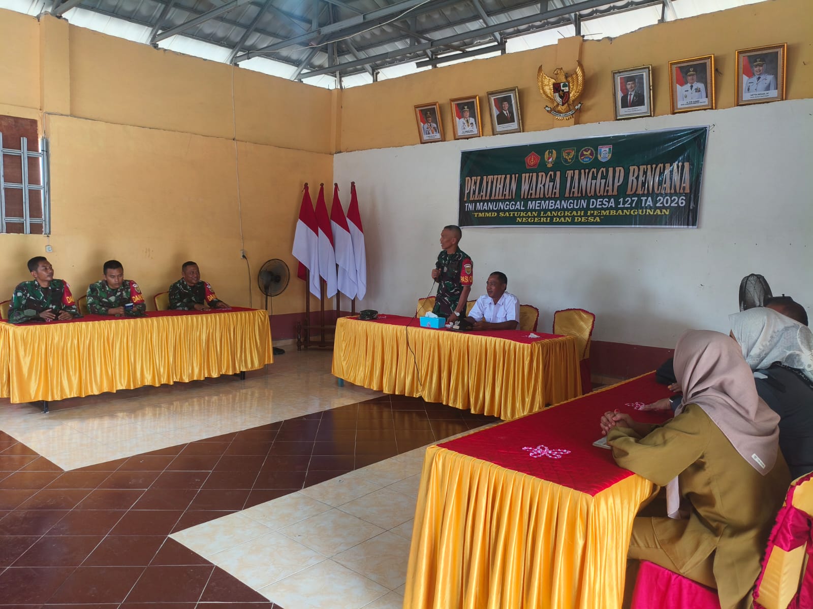 BANYUASIN – Satuan Tugas (Satgas) TNI Manunggal Membangun Desa (TMMD) ke-127 Kodim 0430/Banyuasin (BA) bersama masyarakat Desa Wonosari melaksanakan pelatihan warga tanggap bencana. Kegiatan ini menghadirkan Pasiops Dim 0430/BA, Kapten Arm M Riduan, sebagai pemateri.