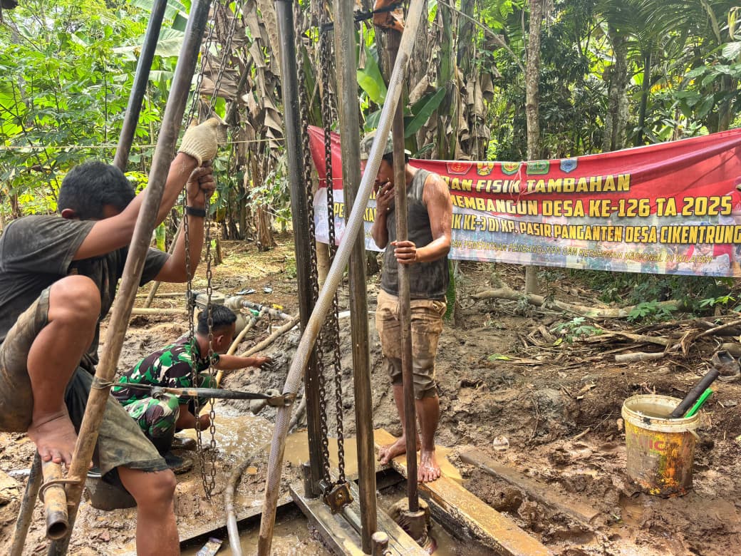 Pandeglang – Program TNI Manunggal Membangun Desa (TMMD) ke-126 Kodim 0601/Pandeglang terus menunjukkan komitmen nyata dalam membantu masyarakat pedesaan melalui berbagai kegiatan pembangunan fisik maupun nonfisik. Salah satu kegiatan yang menjadi fokus utama saat ini adalah pengeboran sumur untuk fasilitas umum di wilayah Kampung Pasir Penganten, Desa Cikentrung, Kecamatan Cadasari, Kabupaten Pandeglang, yang kini telah mencapai progres 85%.