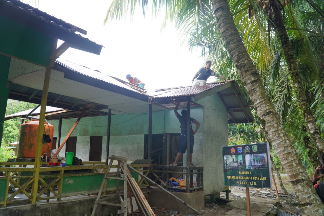 Kegiatan tersebut dilakukan secara gotong royong oleh anggota Satgas TMMD bersama warga sekitar. Pemasangan atap ini merupakan tahap akhir dari pembangunan MCK yang sebelumnya sudah melalui proses pengecoran dan pemasangan keramik.