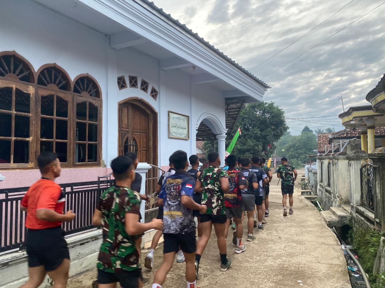 Kegiatan yang dimulai sejak pukul 05.30 WIB tersebut diawali dengan senam peregangan di depan posko, diikuti seluruh personel Satgas dengan penuh semangat. Gerakan pemanasan dilakukan secara bertahap untuk melatih kelenturan otot dan menghindari cedera saat melakukan aktivitas fisik berikutnya. Setelah itu, kegiatan dilanjutkan dengan joging mengelilingi lingkungan desa yang masih diselimuti udara segar pagi hari.