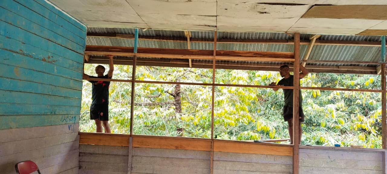 Pada hari Senin (27/10/2025), personel TNI bersama masyarakat setempat terlihat bersemangat melaksanakan gotong royong, bahu membahu memperbaiki dan merenovasi bangunan Balai Kampung. Perbaikan ini bertujuan agar bangunan tersebut menjadi lebih layak, kokoh, dan nyaman untuk digunakan.