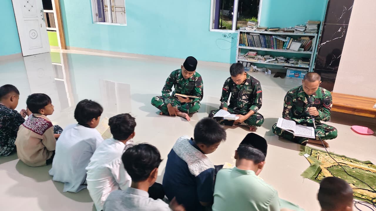 Kegiatan rohani ini dilakukan usai pelaksanaan shalat Tarawih berjamaah. Para anggota Satgas nampak khusyuk melantunkan ayat-ayat suci bersama remaja masjid dan tokoh masyarakat setempat, menciptakan harmoni spiritual di tengah pelaksanaan program pembangunan desa.