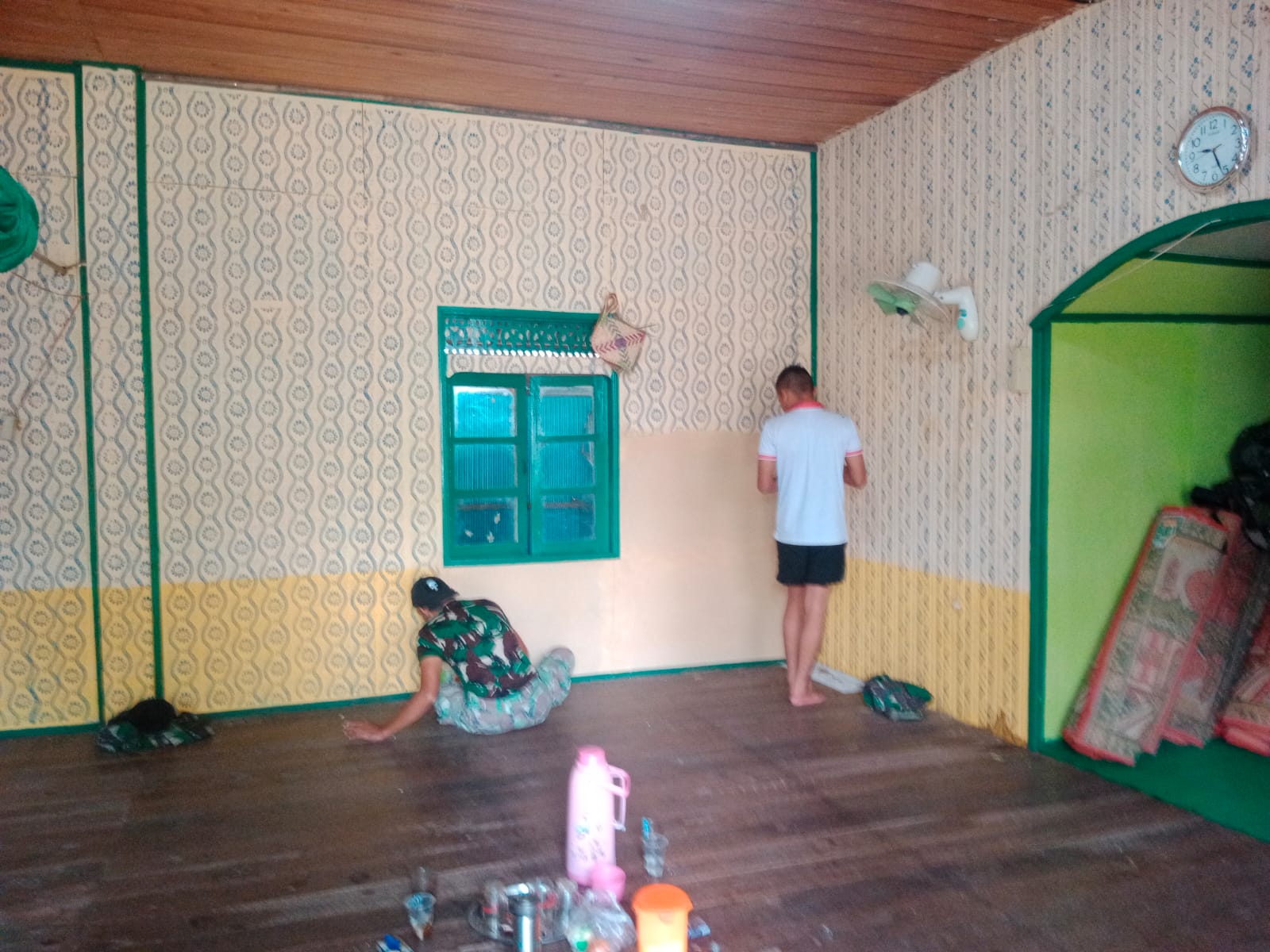 Saat ini, pengerjaan telah memasuki tahap pengecatan serta perbaikan bagian dalam bangunan. Pembenahan meliputi dinding, plafon, serta penataan interior agar kondisi langgar semakin bersih, rapi, dan nyaman digunakan.