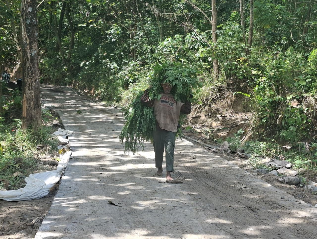 Mbah Wariadi menceritakan betapa sulitnya medan yang harus ia tempuh setiap hari demi menghidupi ternaknya. Jalan yang menjadi akses utama menuju sumber pakan kambingnya dahulu dipenuhi lubang dan licin, terutama saat hujan turun.