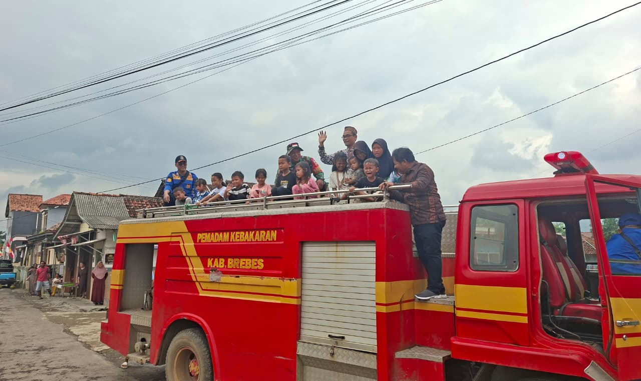 Sebagai bentuk apresiasi dan edukasi kedekatan, petugas Damkar Pos Kersana memperbolehkan anak-anak setempat untuk menaiki mobil pemadam kebakaran (Damkar). Kesempatan langka ini pun langsung disambut antusias oleh puluhan anak yang sudah menanti sejak pagi.