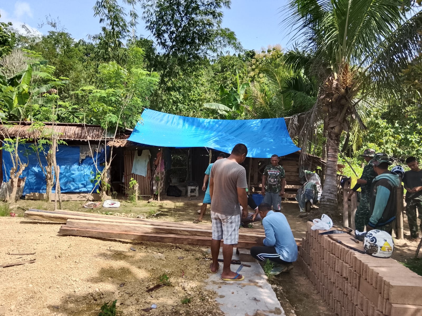 Ketelitian dalam merakit besi tulangan dan kerangka tiang menjadi fokus utama para prajurit dan warga guna memastikan struktur bangunan memiliki daya tahan yang maksimal untuk jangka panjang.